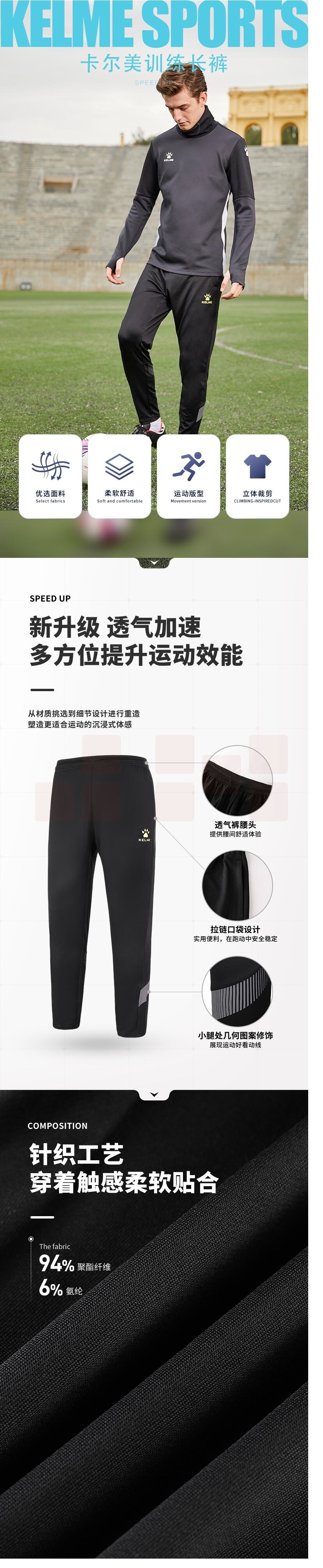 KELME/卡尔美 运动裤 透气修身弹力训练长裤 8161CK1003