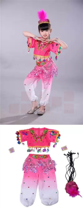 儿童新疆舞演出服表演舞起服装鼓幸福少儿女童维族幼儿民族舞蹈服(号码备注)
