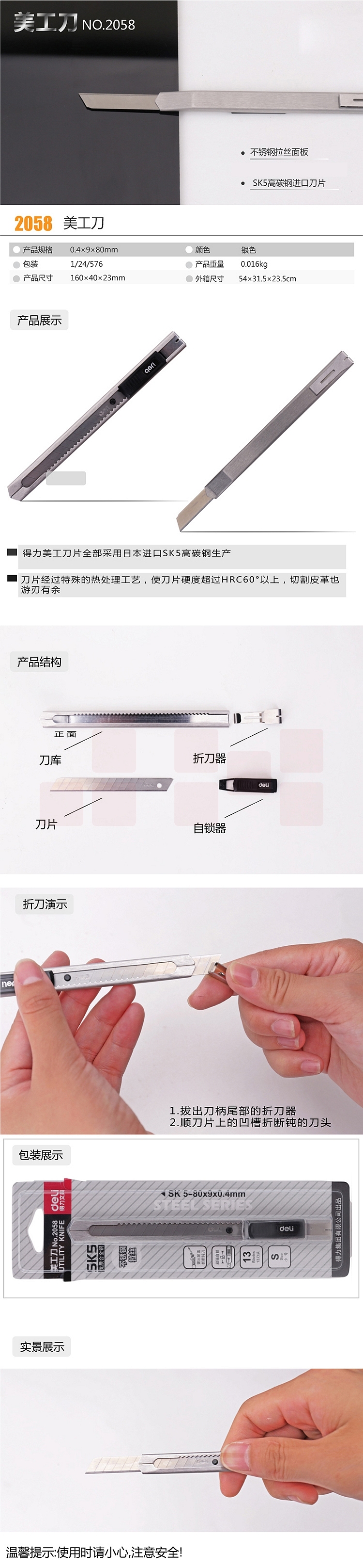 得力 金属小号美工刀9mm 自动锁裁纸刀2058