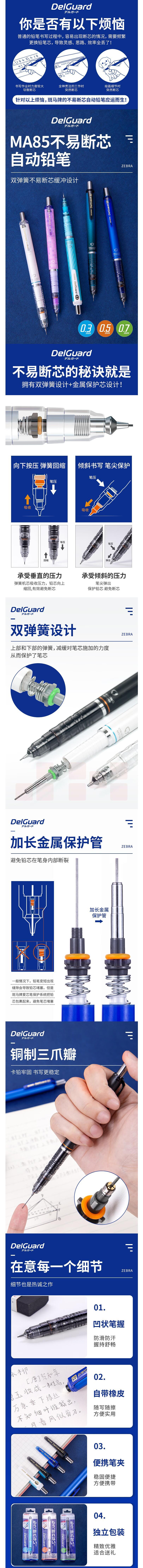 斑马牌/ZEBRA MA85 防断芯自动铅笔 0.5mm 白色(单位:支)