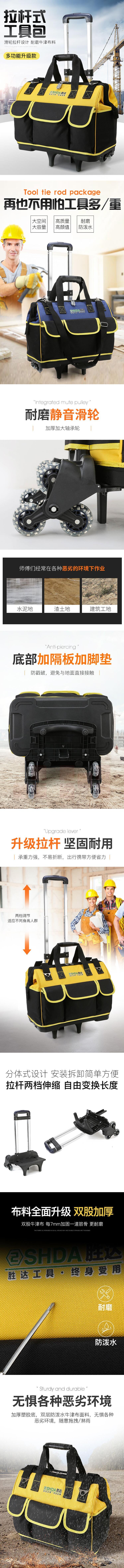带轮工具包 蓝色大号拉杆滚轮帆布包 多功能工具箱 尺寸:46*25*34cm 货号:JC
