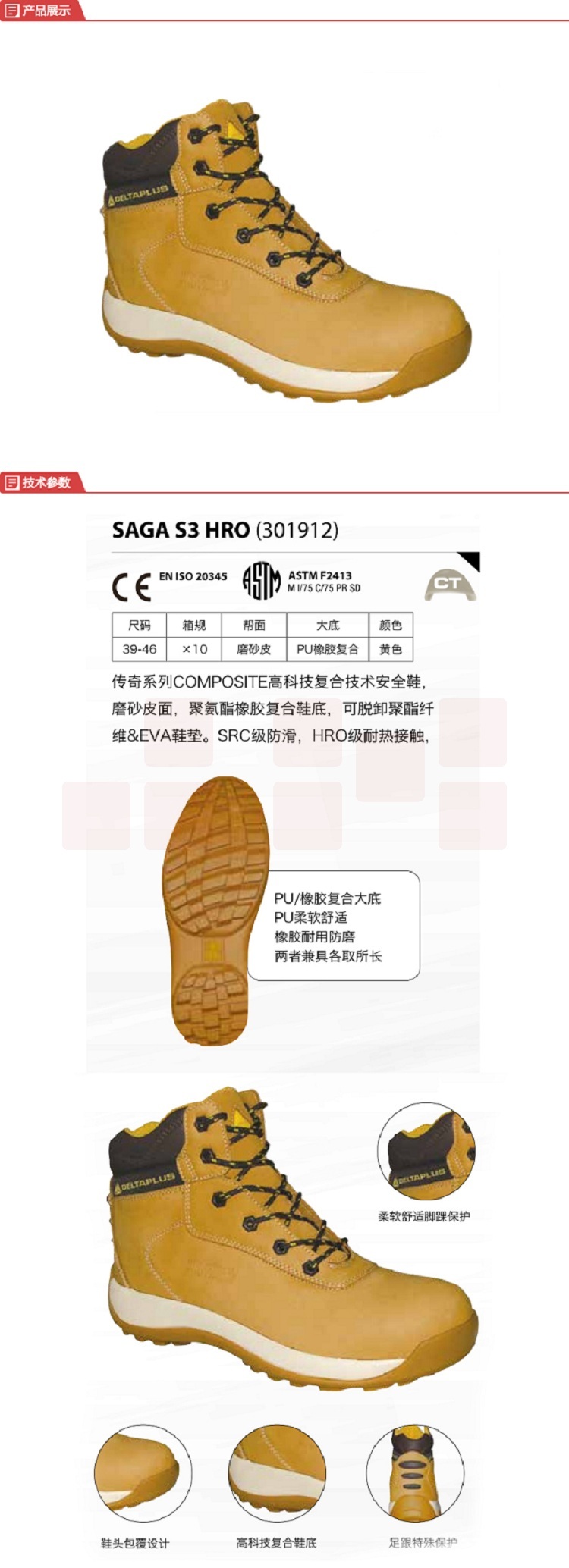 代尔塔 301912-米色传奇系列S3高帮安全鞋 防水防砸防刺穿