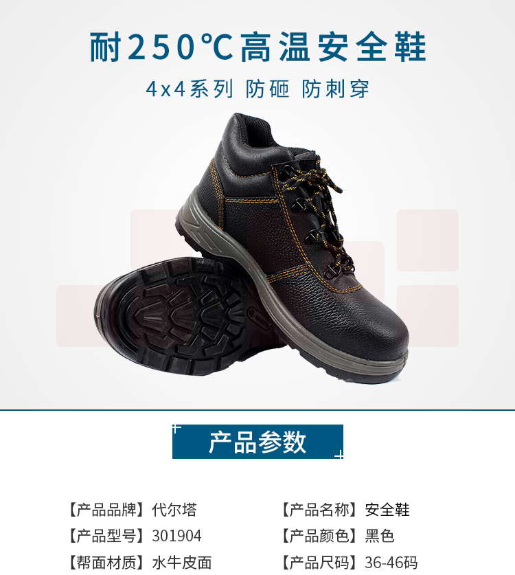代尔塔 301904 4x4系列S1P中帮防水防滑耐250℃高温安全鞋