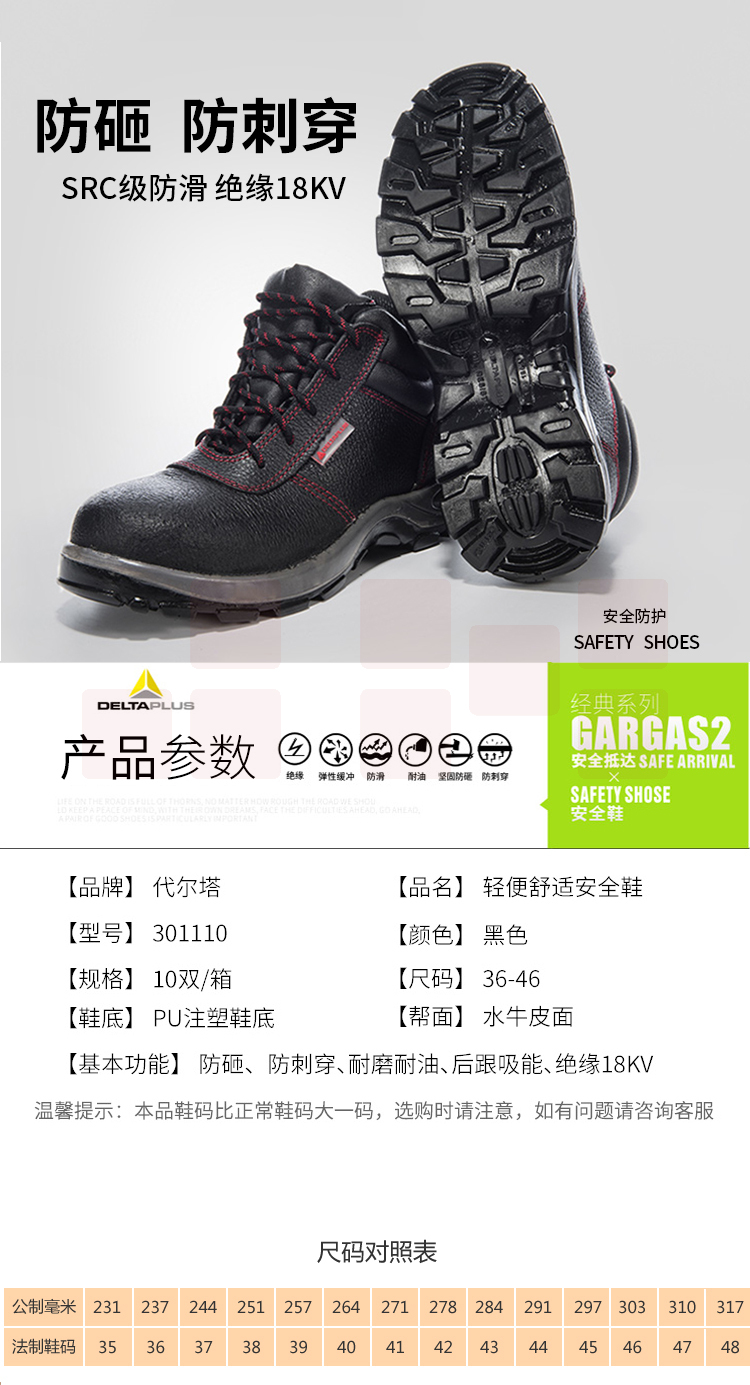 代尔塔 301110 经典系列无金属高帮防砸防刺穿18KV绝缘鞋
