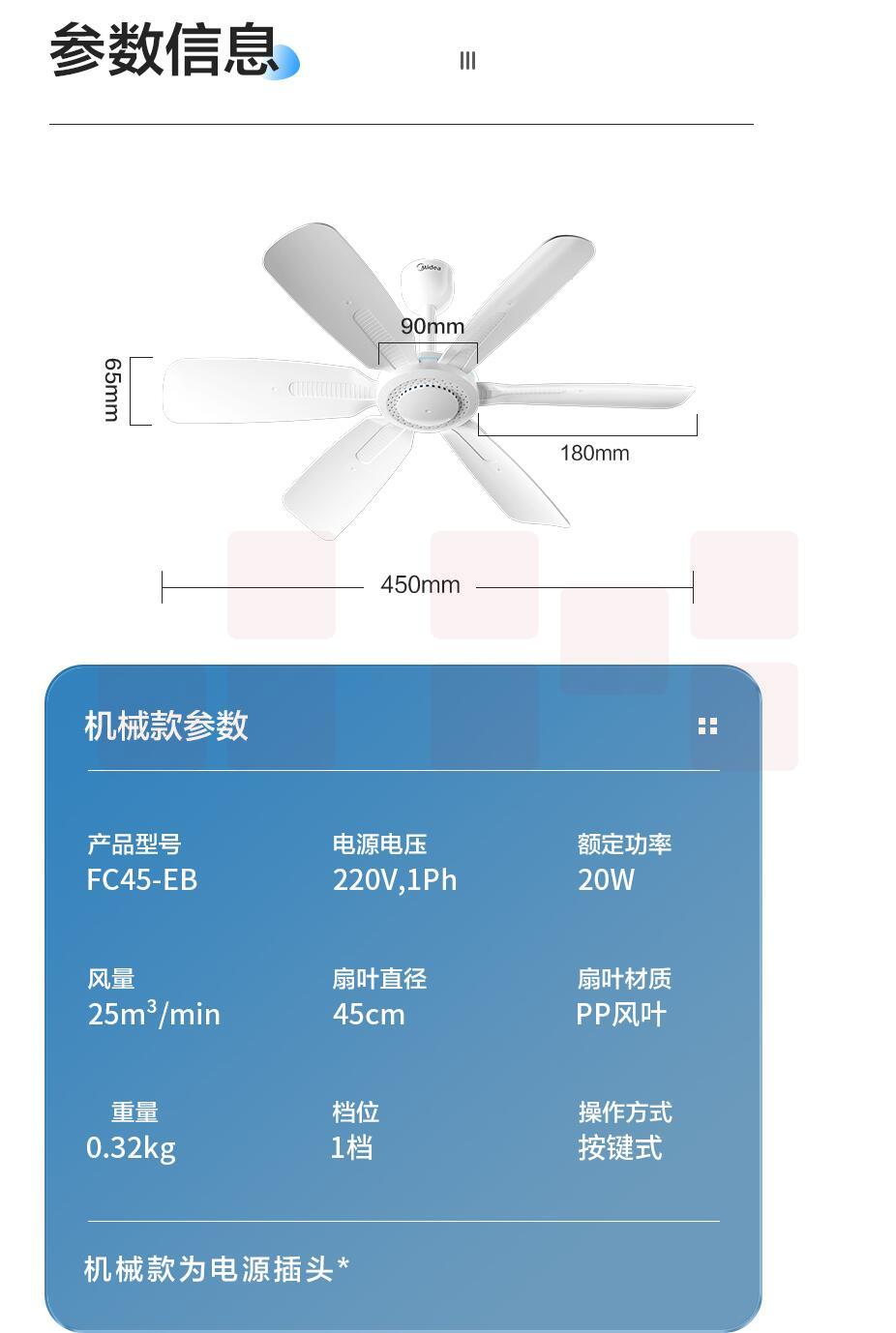 美的(Midea) 小吊扇 小型电风扇 蚊帐扇 FC45-EB