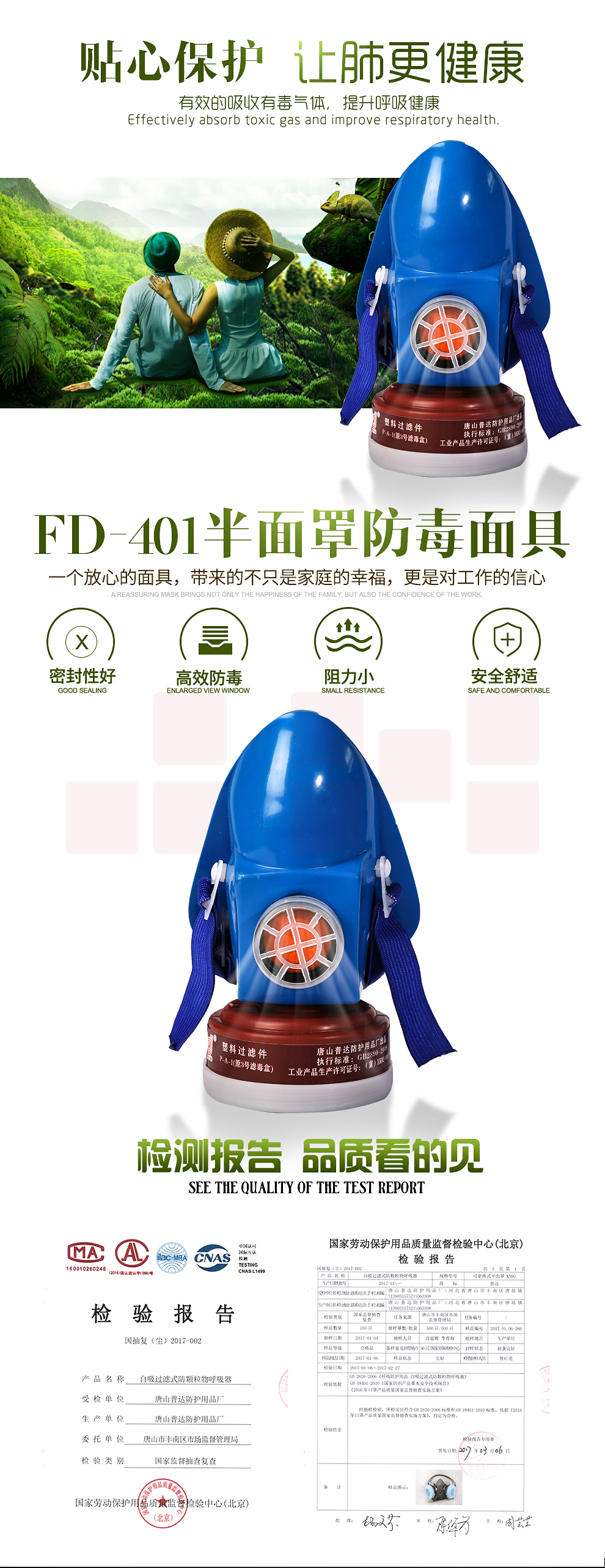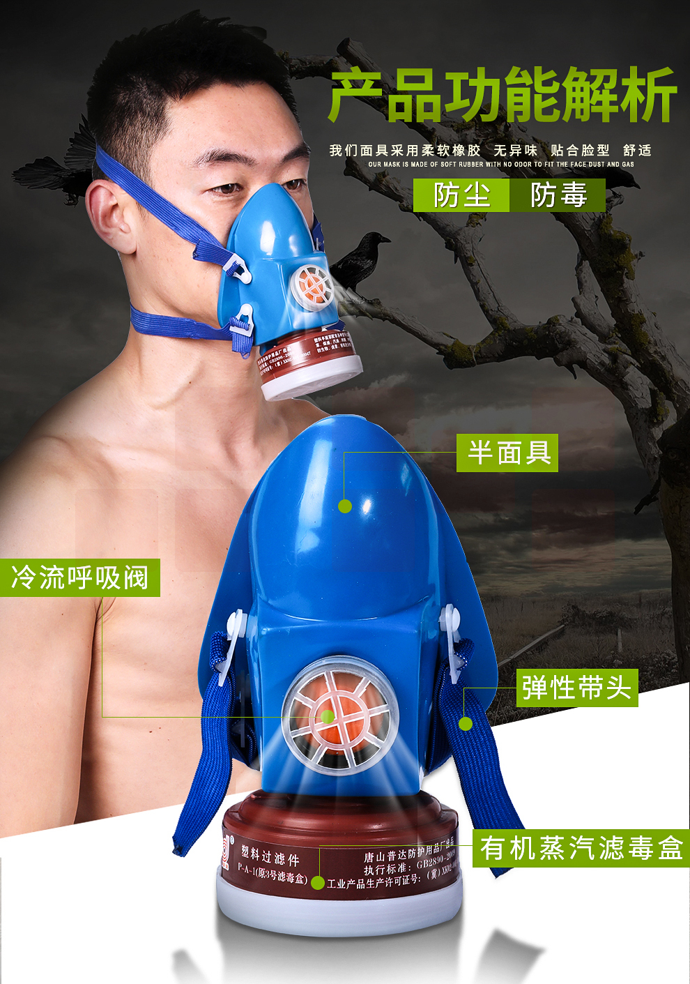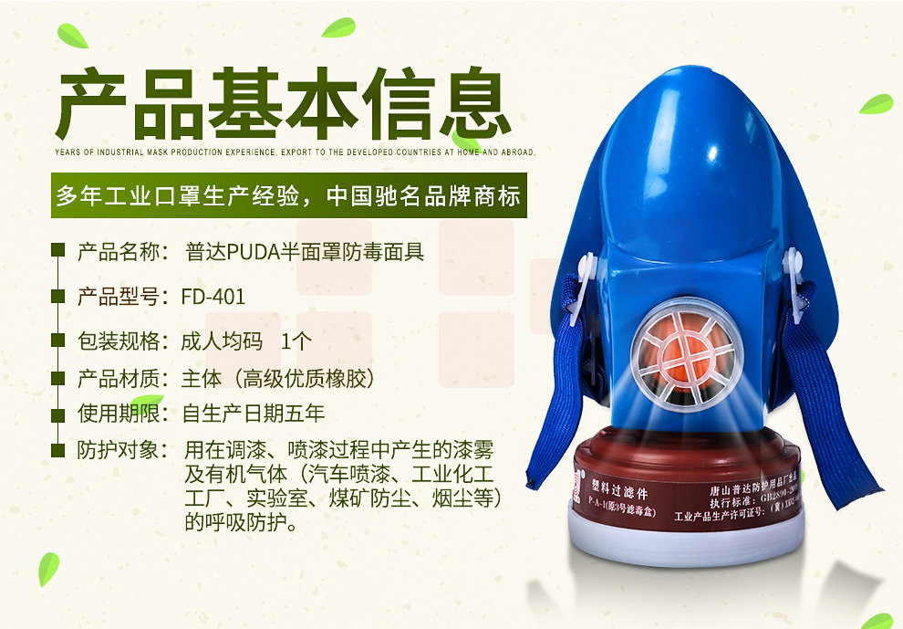 普达(PUDA)401单防毒防烟面罩 50个/箱