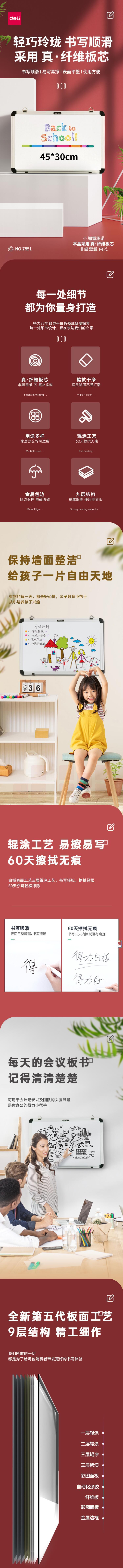 得力白板 45*30cm小白板 白板悬挂式 白板写字板7851