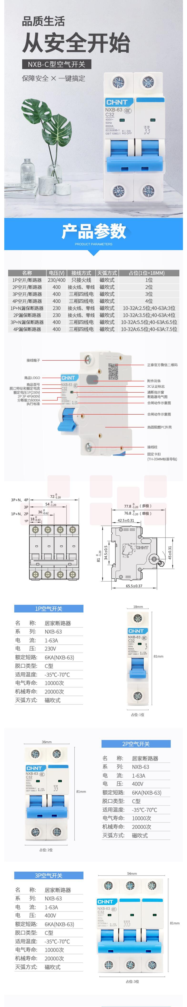 正泰(CHNT)NXB-63-3P-C25 家用空气开关 过载空气开关
