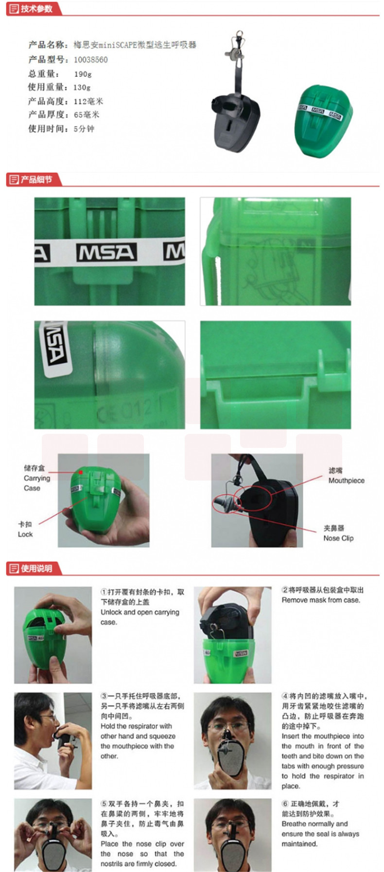 梅思安 10038560-CN miniSCAPE 微型逃生呼吸器 均码