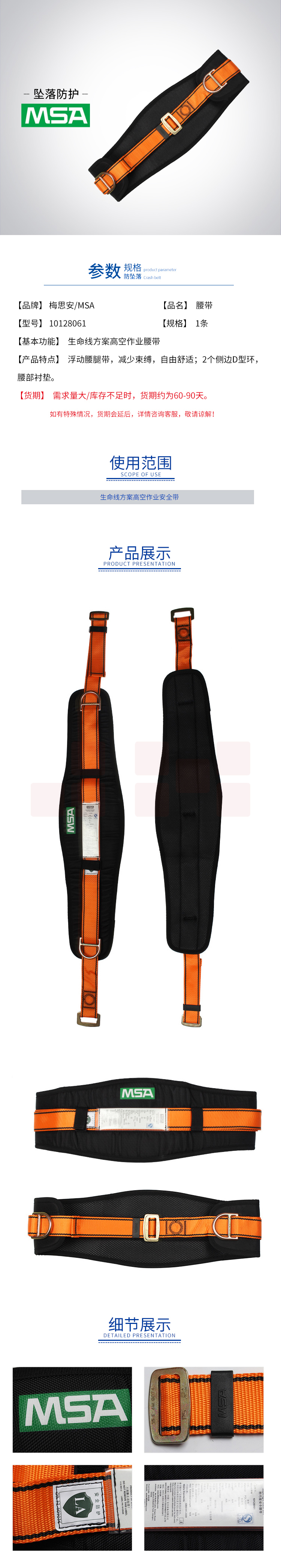 梅思安/MSA 10128061 轻巧星腰带 2个侧边 D型环 腰部衬垫 1套