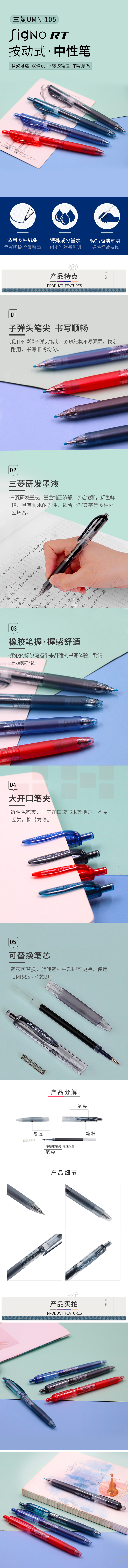 三菱 UMN-105按动中性笔 0.5mm 黑色(12支/盒)