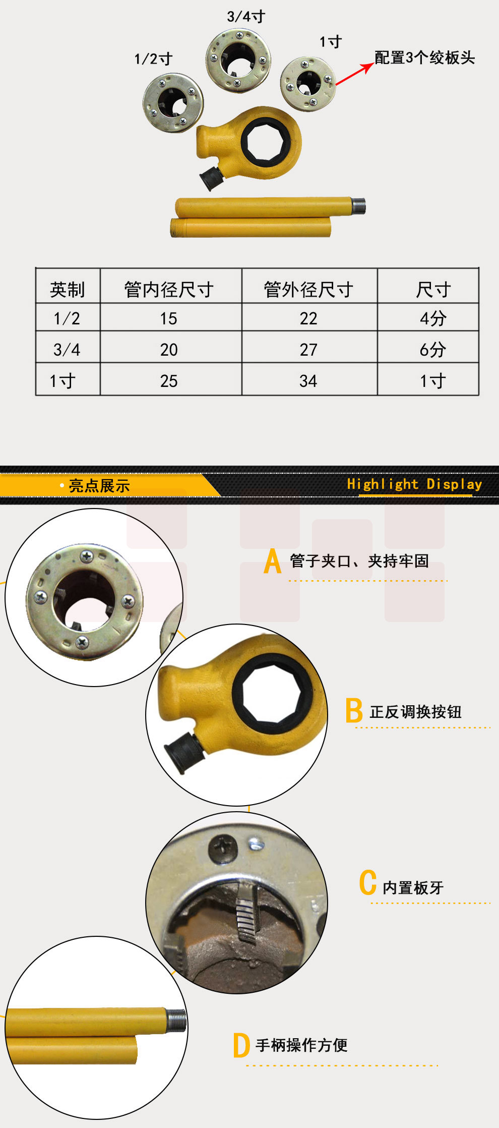 沪工(HG)轻型绞板轻型铰板/轻型管子铰板手动套扣机1/2寸-1寸