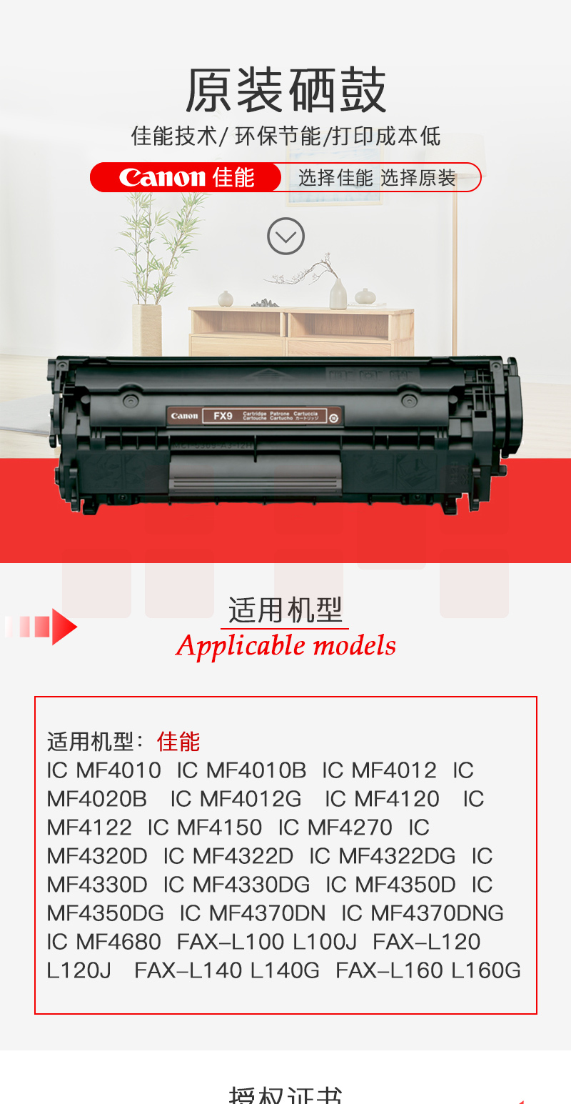 佳能)FX-9 黑色硒鼓(适用L100 MF4120 4010)