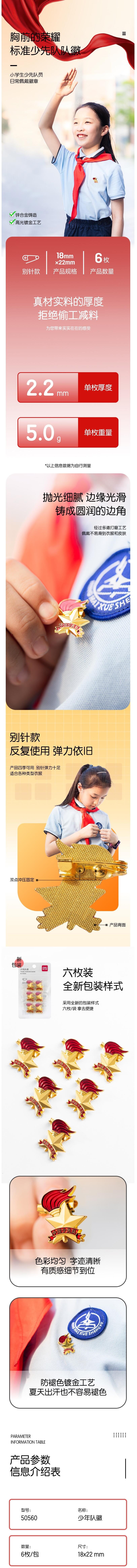 得力 50560 少先队徽 别针款(金色) (6枚/袋)