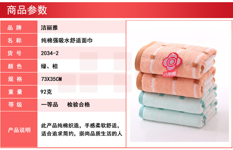 洁丽雅 毛巾 2034 强吸水舒适面巾 纯棉洗脸毛巾 全棉柔软