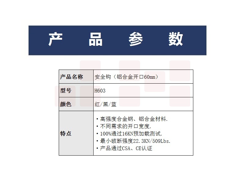 百业安 H603 安全钩 蓝/红/黑 铝合金开口60mm