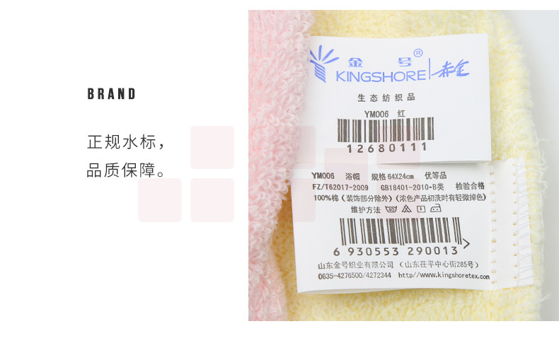 金号(KINGSHORE) 干发帽纯棉 超强吸水干发巾成人加厚浴帽擦头毛巾速干包头巾 YM008红色 64cm x 24cm