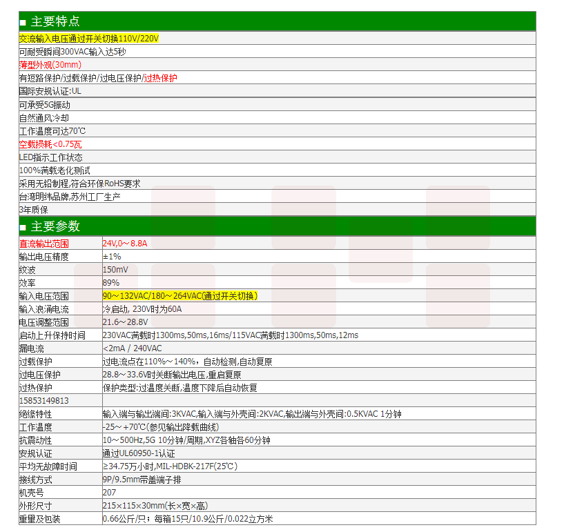 明纬 开关电源LRS-200-24 24V 货号:JC