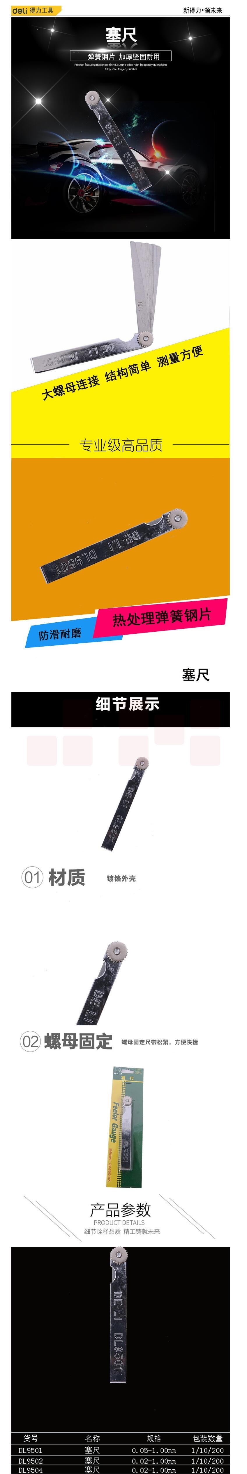 得力(deli) 不锈钢塞尺 间隙尺17件套塞尺100Lx0.02-1.00mm DL9502