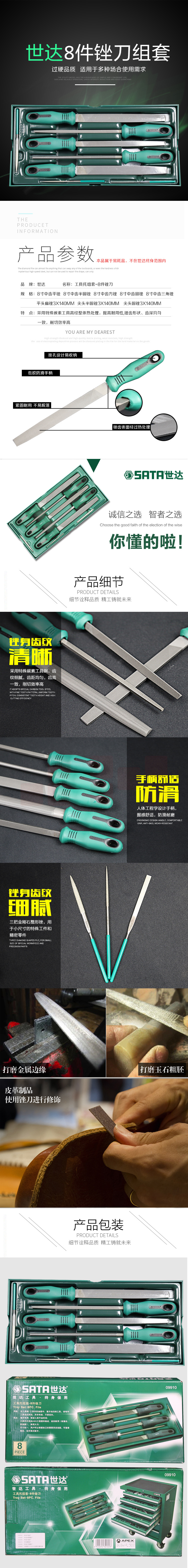 世达 锉刀 8件中齿平挫半圆锉尖头方锉平头扁锉套装 09910