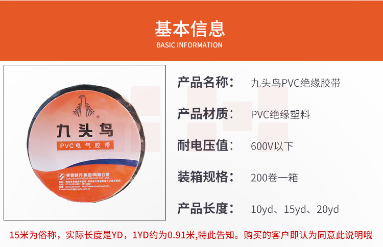 九头鸟 15米/卷 绿色电工绝缘胶布 5盘装 PVC电气胶带