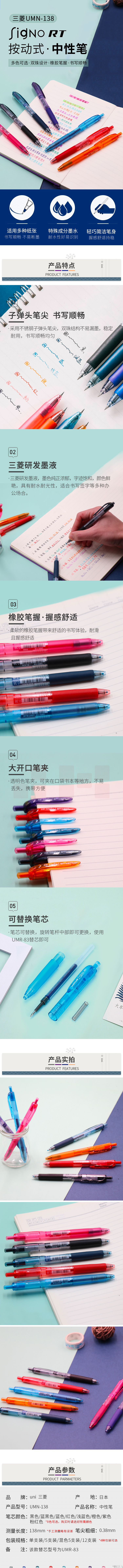 三菱 按压式中性笔 UMN-138 0.38mm (橙色) 12支/盒