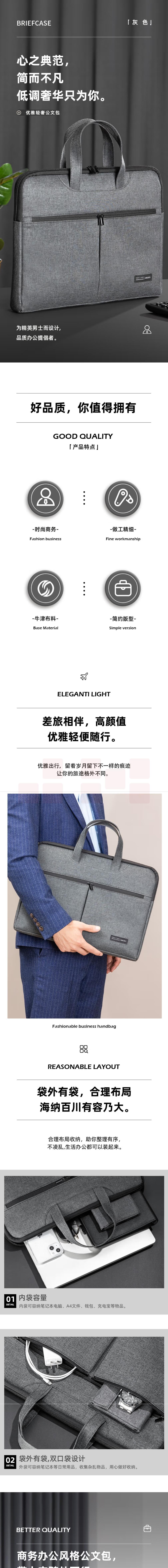 得力 BG101-45手提袋/会议包/事务包/电脑包390*290*40cm 灰