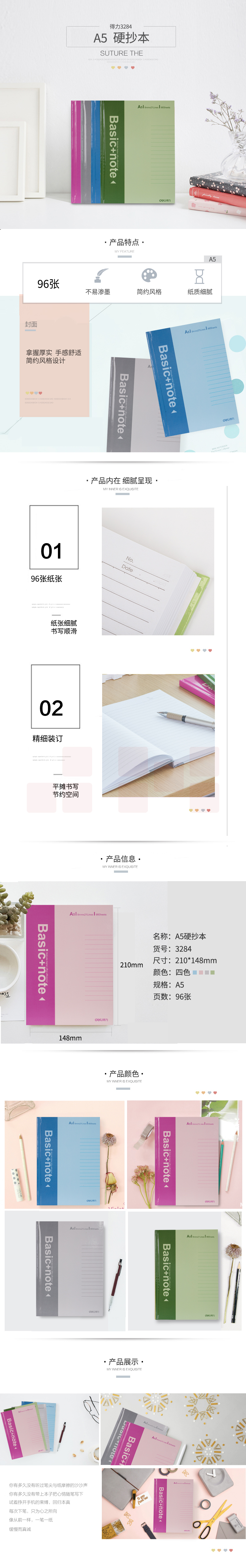 得力 A5记事本96张 硬面抄笔记本会议记录本 颜色随机 3284