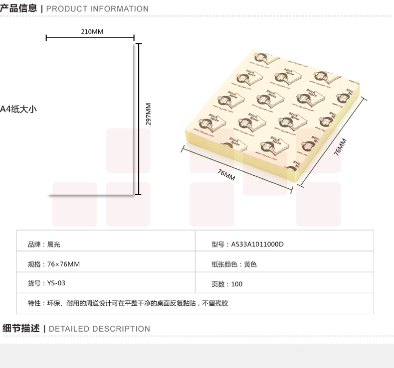 晨光YS-03记事贴 留言贴 便利贴 N次贴 76*76mm 100页 /本