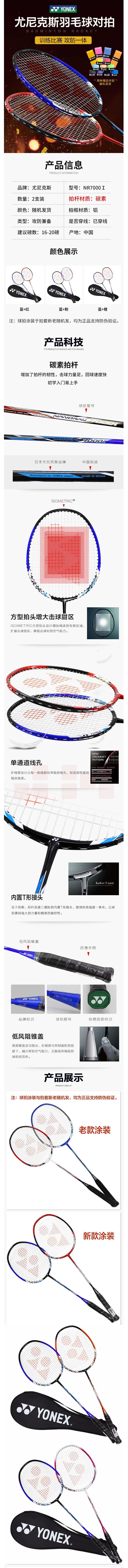 尤尼克斯 羽毛球拍 碳素中杆比赛 NR7000I蓝红对拍 货号:JC