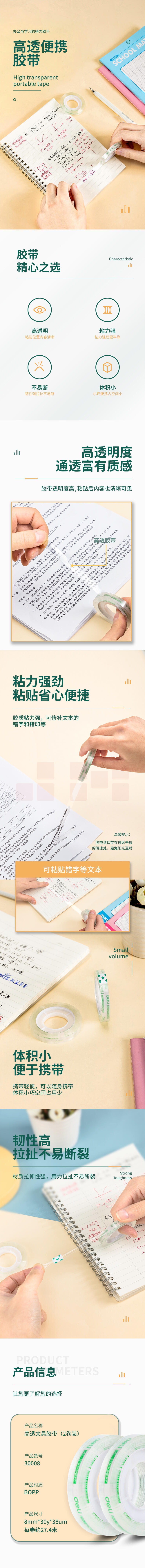 得力30008文具胶带8mm*30y*38um(透明)(2卷/袋)