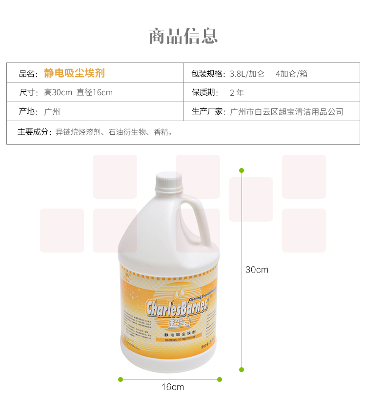 超宝 静电吸尘埃剂尘推液静电水地拖油除尘剂尘推油地板清洁剂3.8L 1瓶装