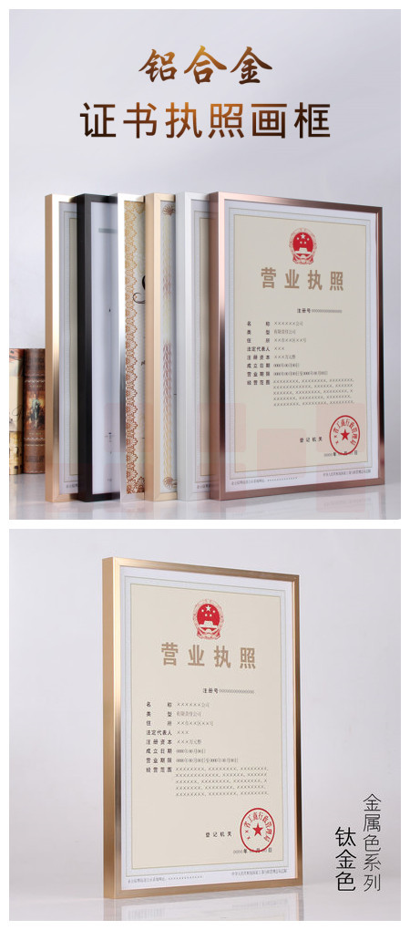 铝合金A3三证合一营业执照相框挂墙,工商税务画框,证书框 A3 挂式