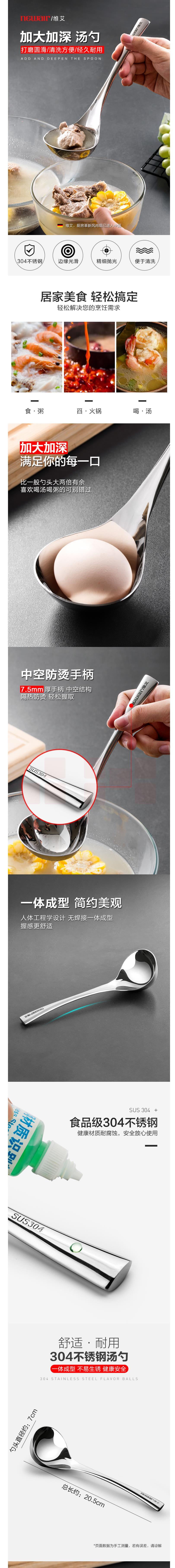 维艾(Newair)304不锈钢大头勺子加厚长柄加深汤勺 货号:JC