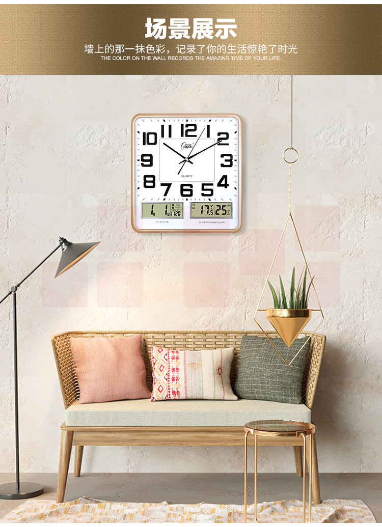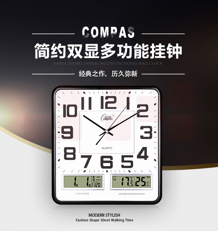 康巴丝 挂钟 双显万年历挂表 16英寸(直径37*35厘米)2988钟表