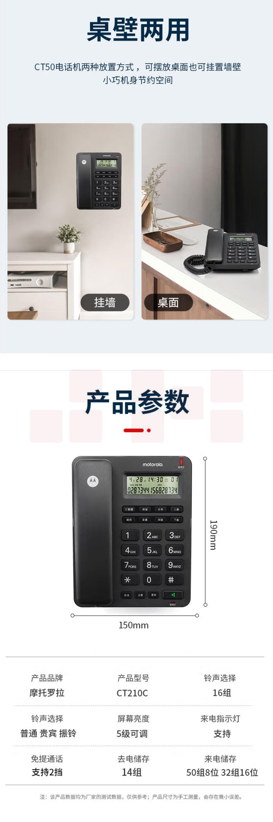摩托罗拉 CT210C 电话机座机 有绳固话 免提免打扰家用办公