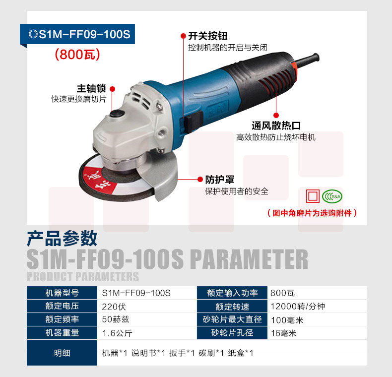 东成 角磨机/角向磨光机 SIM-FF09-100S(800W)