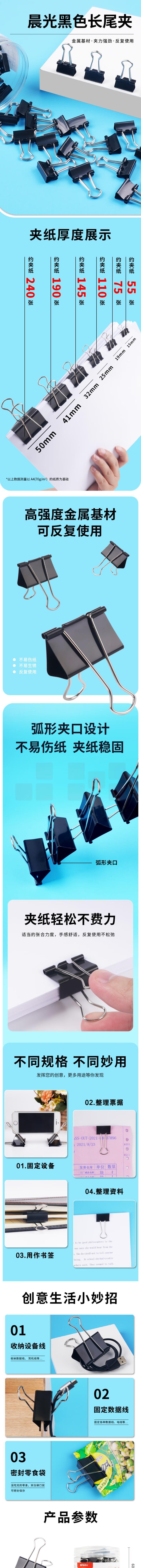 晨光 5号长尾夹19mm燕尾夹 票夹 ABS92736 40枚装