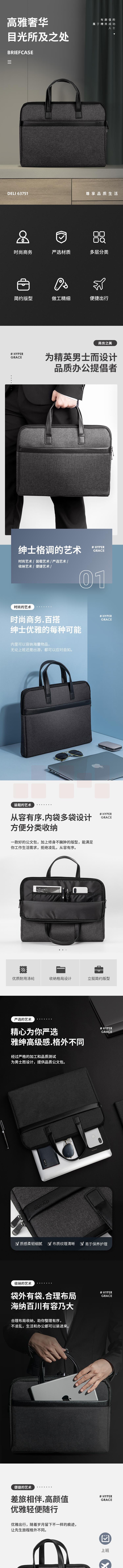 得力 63751公文包 文件袋事务包 涤纶电脑包深灰