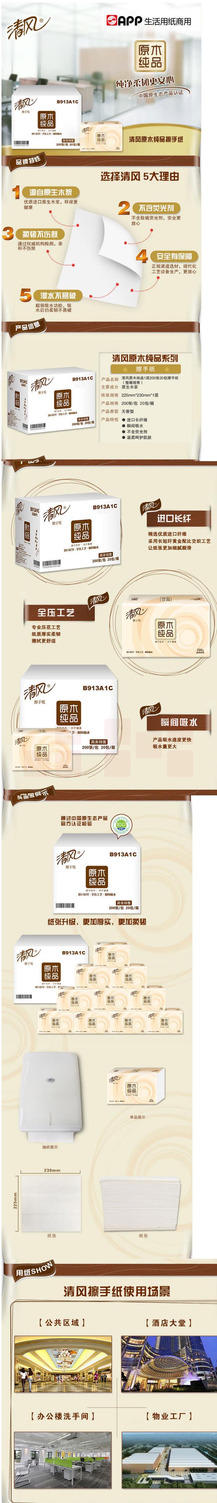 清风擦手纸200抽20包原木纯品225*230mm B913A1C