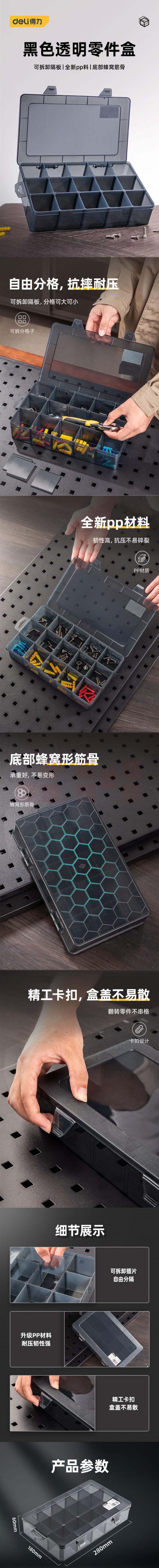 得力 多功能零件盒收纳盒15格分类盒元件盒28x18x6cm DW3420(黑)(个)