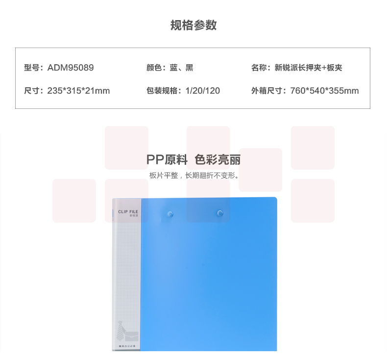 晨光 A4资料夹文件夹弹力夹 长押+板夹 ADM95089 蓝色