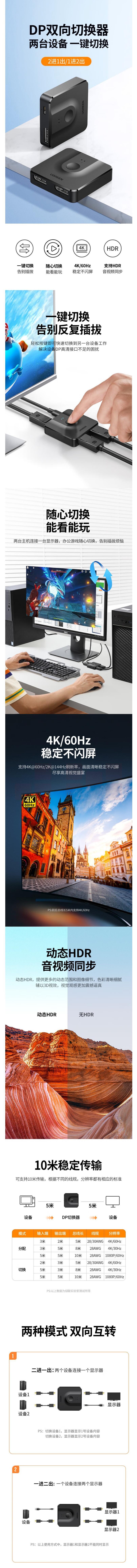绿联 DP切换器二进一出 4K高清视频分配器 CM430 60622 货号:JC
