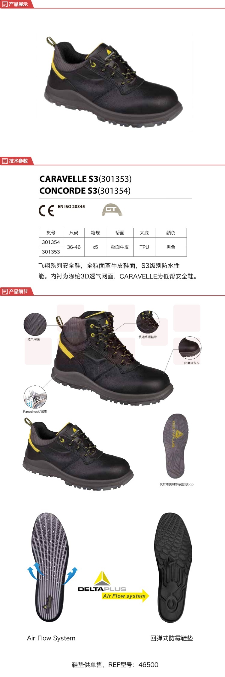 代尔塔 301353飞翔系列低帮安全鞋 黑色