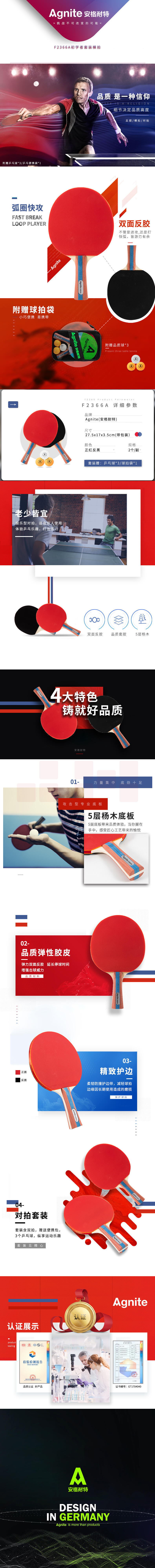 安格耐特F2366A乒乓球拍横拍对拍(正红反黑)(2个/副)(带三球)
