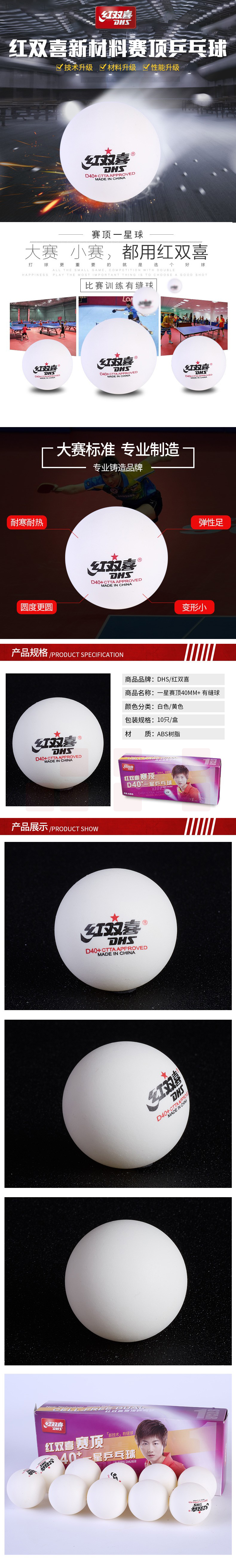 红双喜 CD40C 赛顶一星乒乓球 10只/盒