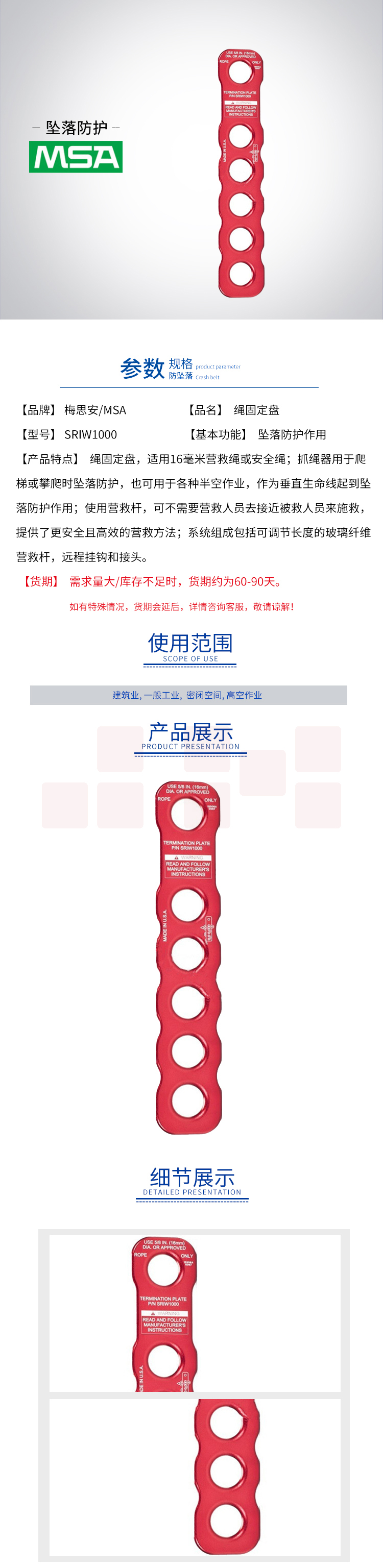 梅思安/MSA SRIW1000绳固定盘 适用16毫米营救绳或安全绳
