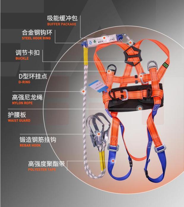 套装安全带 全身五点安全带套装 双钩安全带坠落防护680801