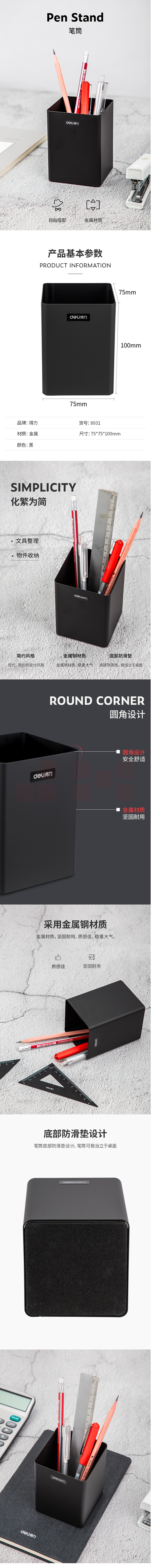 得力8931金属方形笔筒 75*75*100mm