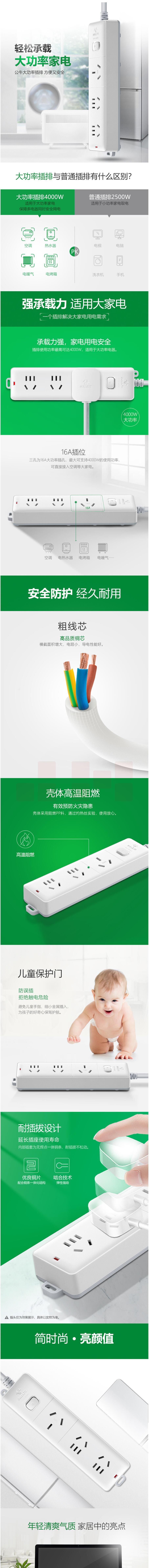公牛16A接线板 GN-406D 3位总控全长1.8米 大功率多位插座